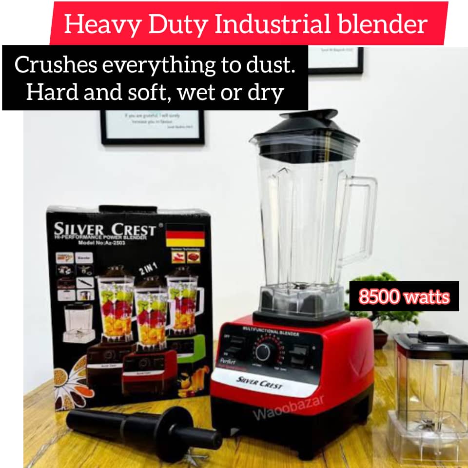 Blend like a pro with the Silver Crest Industrial Blender, built for heavy-duty use in both home and commercial kitchens. With its high-powered motor and durable stainless steel blades, this blender handles everything from fruits and vegetables to nuts, ice, and even grains—effortlessly.